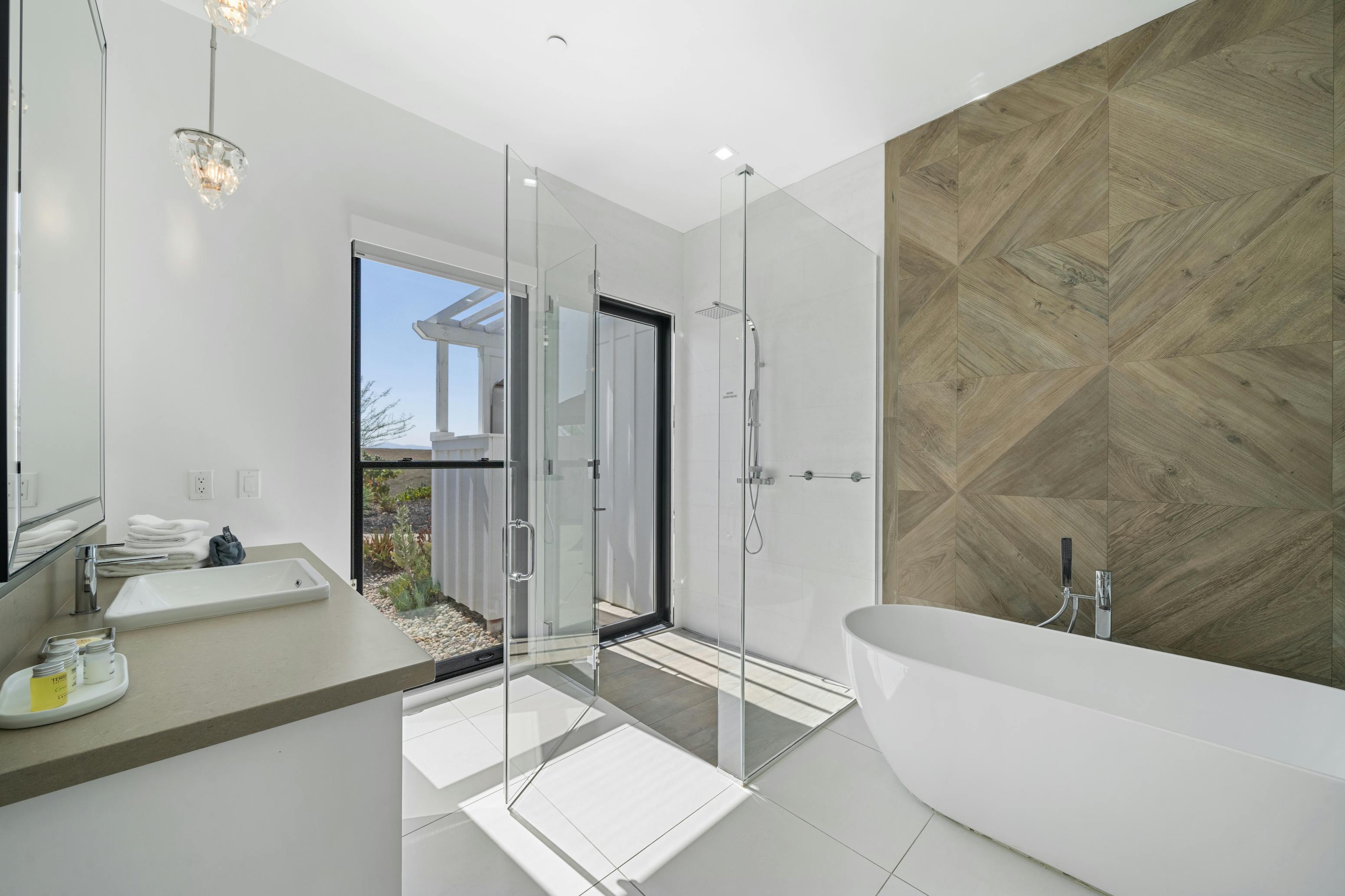 Enter an oasis of dazzling silver designed to envelop you in Contemporary Elegance and luminous serenity. Floor-to-ceiling windows reveal stunning views of your private patio and the rolling vineyard hills of Temecula Valley.