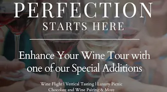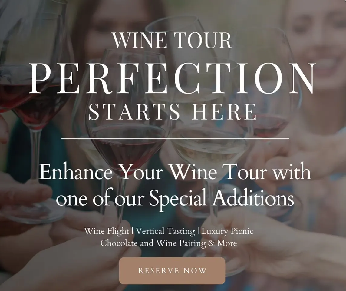 As always, Tour del Vino prides itself on offering customized tours. Therefore, we are flexible on all packages and strive to assist you in the customization of your ultimate wine tour experience. From a romantic outing for two to a group excursion, we have a luxury vehicle to accommodate your needs.